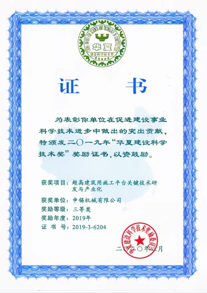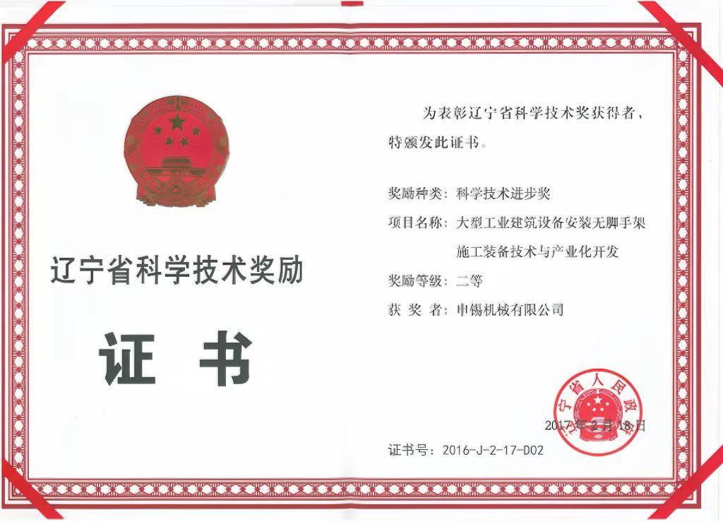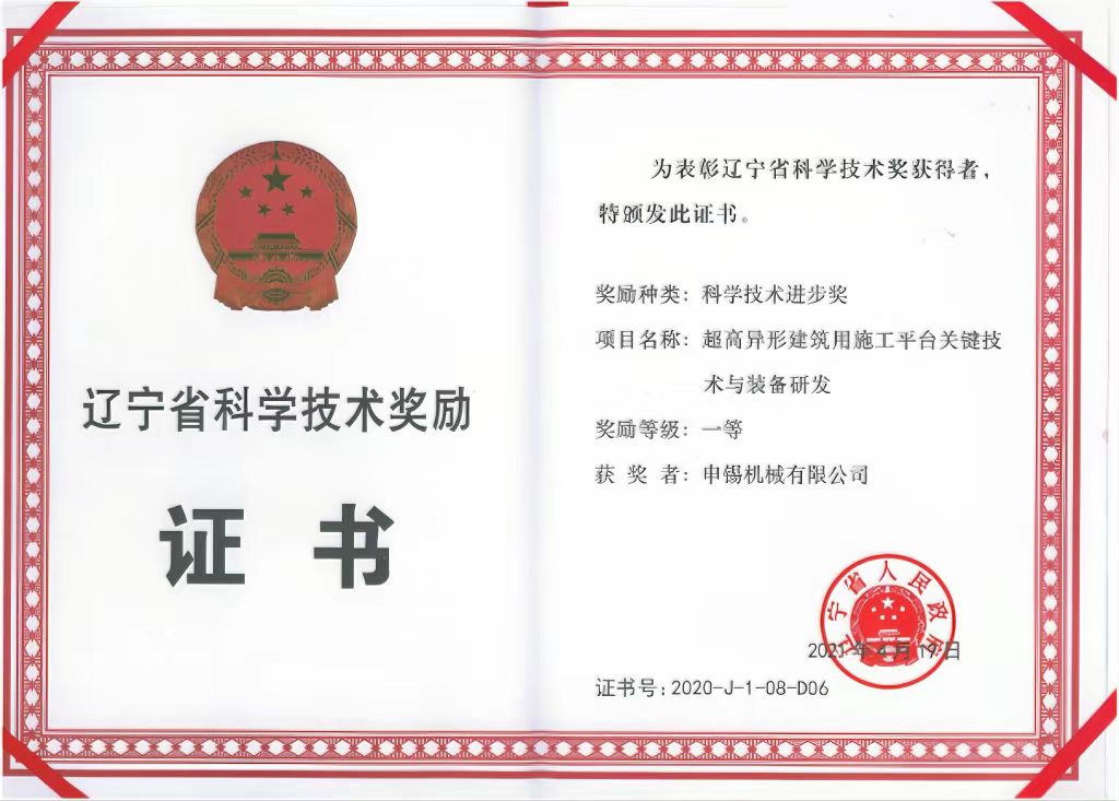 這次合作奠定了申錫企業(yè)與沈陽建筑大學(xué)之間的校企合作走深走實,之后企業(yè)先后參加了國家“十二五”、國家“十三五”等科研任務(wù)的聯(lián)合研制,雙方共同的努力換來了碩果累累,完成的"大型工業(yè)建筑設(shè)備安裝無腳手架安裝作業(yè)裝備技術(shù)研究與產(chǎn)業(yè)化開發(fā)"獲得2016年遼寧省科學(xué)進步二等獎,完成的“超高建筑維修起重平臺關(guān)鍵技術(shù)研發(fā)與產(chǎn)業(yè)化” 獲得2019年的華夏建設(shè)科學(xué)技術(shù)獎,完成的“超高異形建筑用施工平臺關(guān)鍵技術(shù)與產(chǎn)業(yè)化” 獲得2020年遼寧省科學(xué)進步一等獎……成績的獲得離不開科研人員的努力,更離不開學(xué)校及校領(lǐng)導(dǎo)多年來對申錫的支持和幫助。